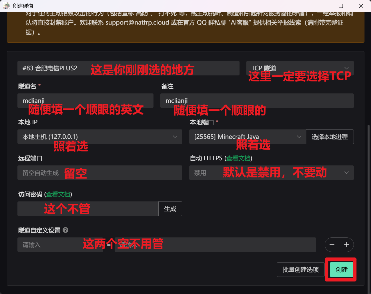 接下来会进入更详细的设置,照着图片填,然后直接点创建就好了。