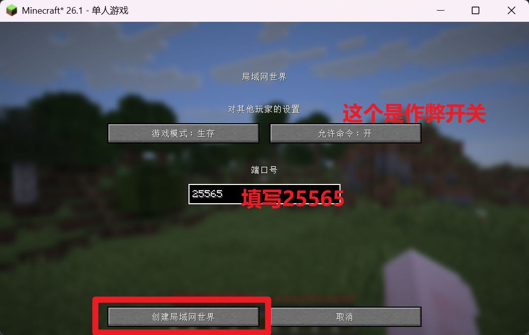 - 你的mc版本比较老,游戏里创建局域网的时候不能自己填端口号